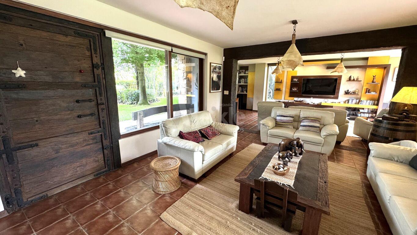 Descubre esta exclusiva casa, ubicada en la mejor zona del Pinar, que se asienta sobre un extenso parque de 2,370 m² y cuenta con 570 m² construidos.Espacios amplios y confortables: Gran living y estar equipados con estufa a leña de alto rendimiento y aire acondicionado,