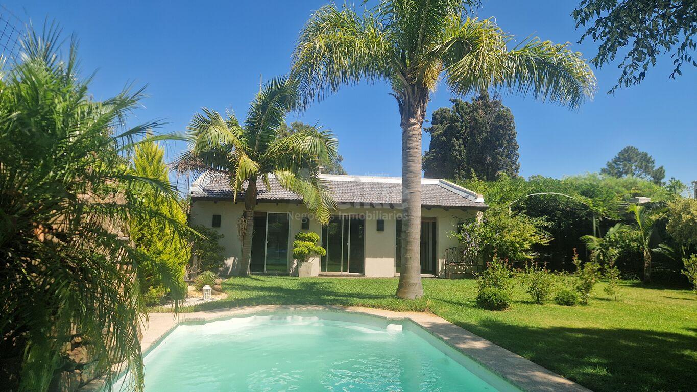 Excelente construccion en entorno muy lindo en Solymar. Hall de entrada. Living comedor con estufa leña. Cocina amplia con salida a la cochera. Cuatro dormitorios uno en planta baja y tres en planta alta, El principal en suite con vestidor. Dos baños completos y un toilete.Parrillero techado , Barbacoa o apartamento con dos habitaciones con kitchinete y baño. Piscina climatizada. Hermoso parque cercado.
