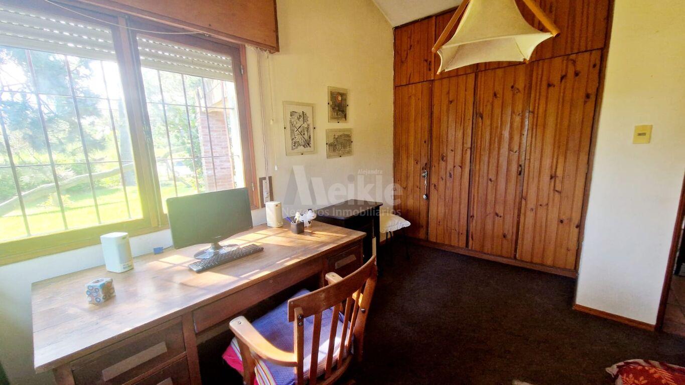 Casa esquina excelente construccion de ladrillo. Hermoso parque arbolado con entrada por dos calles.Living con estufa leña. Comedor con cocina integrada.